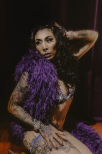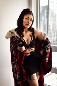 For the past 18 years Bea Lissima has been performing and producing in the burlesque community. This Moh’kins’tsis born maven has competed at the Japan International Burlesque Festival, performed at the Burlesque Hall of Fame Weekender in Las Vegas. She was awarded “Best Burlesque” at the 2023 Imperial Burlesque Competition in Montreal and was crowned Duchess at the 2024 Pacific Northwest Burlesque Festival. Combining intersex queerness, Filipino heritage, and disability into her performances, she creates a sacred experience for all those brave enough to witness.